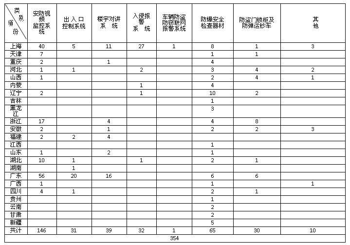 一、個(gè)省、自治區(qū)、直轄市獲得生產(chǎn)登記批準(zhǔn)書的安防產(chǎn)品生產(chǎn)企業(yè)數(shù)量(354共家):