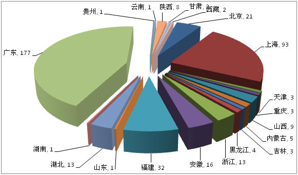 華東地區(qū):490家 華南地區(qū):553家 華北地區(qū):92家 華中地區(qū):22家